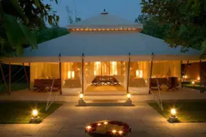 Aman-i-Khás, on the edge of Ranthambore National Park, offers a luxury safari retreat blending elegant tented accommodations with modern comforts. Guests enjoy wildlife safaris, personalized service, and a serene setting, creating a unique and immersive Rajasthan experience.
