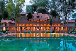 Amanbagh, nestled in Alwar’s Aravalli Hills, is a luxurious retreat combining Mughal-inspired architecture with serene surroundings. Featuring elegant pavilions, lush gardens, world-class dining, spa experiences, and personalized service, it offers a tranquil and memorable stay.